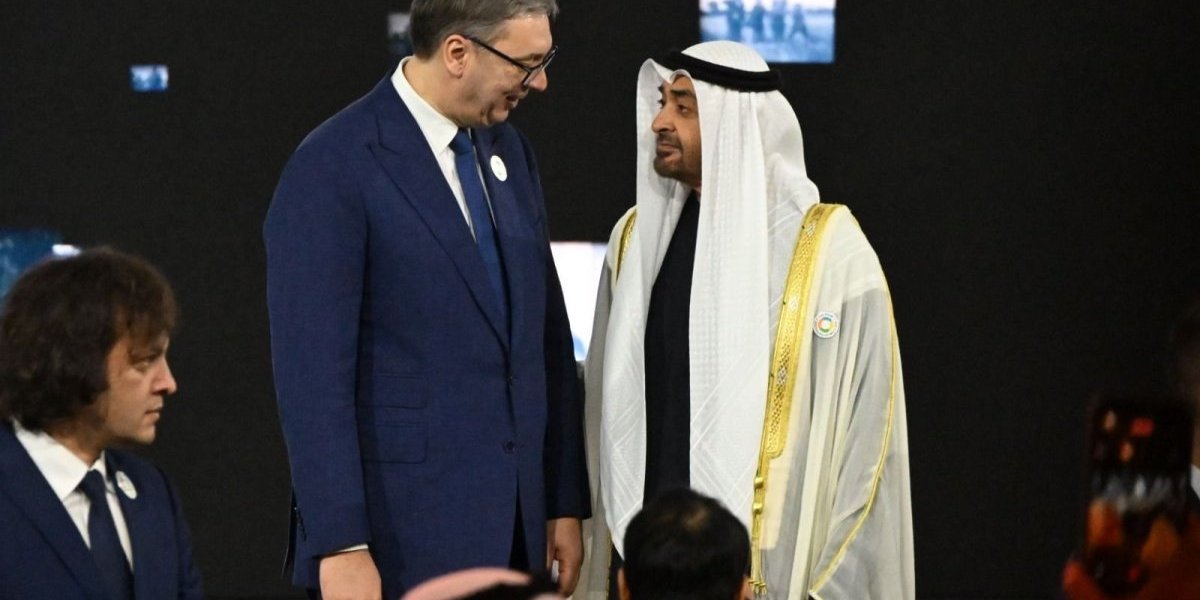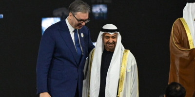 Predsednik Srbije Aleksandar Vučić boravi u Abu Dabiju u Ujedinjenim Arapskim Emiratima (UAE), gde se sastao sa domaćinom skupa, šeikom Mohamedom bin Zajedom al Nahjanom.