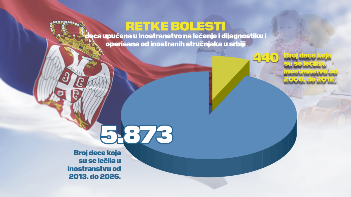 Inače, između 2008. i 2012. godine na lečenje van naše zemlje poslato je 440 dece, dok se u proteklih 13 godina o trošku države u inostranstvu lečilo više od 5.800 mališana. Mnogima je za taj put koji život znači na raspolaganje dat i Vladin avion. Na taj način je šansu dobila i Teodora Lukić iz Šapca, koja boluje od anomalije krvnih sudova u stomaku.