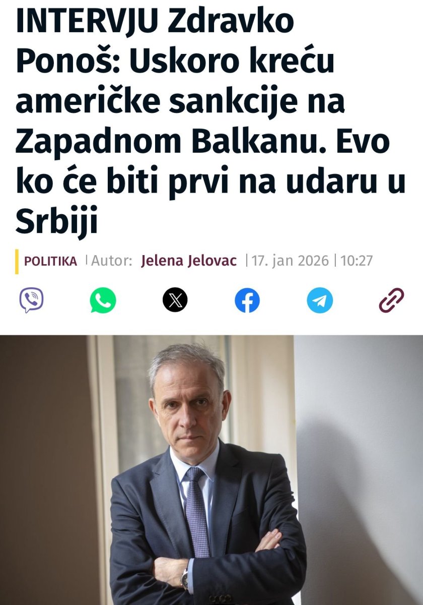 Ponoš u intervjuu za blokaderski medij "Nova" potpuno neosnovano tvrdi da uskoro kreću američke sankcije na Zapadnom Balkanu i smelo predviđa ko će biti prvi na udaru u Srbiji.