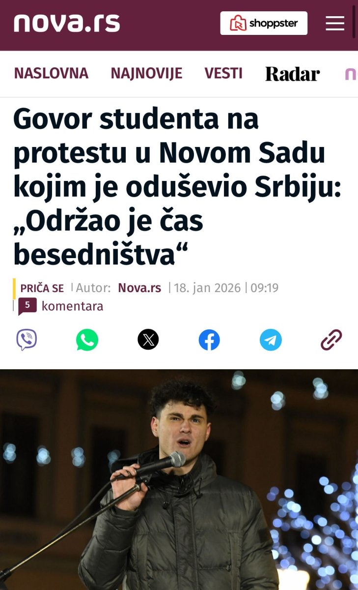 Oni su o najvećem blokaderskom lažovu, koji na sve načine želi da prikupi po koji poen, napisali tekst pod naslovom: "Govor studenta na protestu u Novom Sadu kojim je oduševio Srbiju: Održao je čas besedništva".