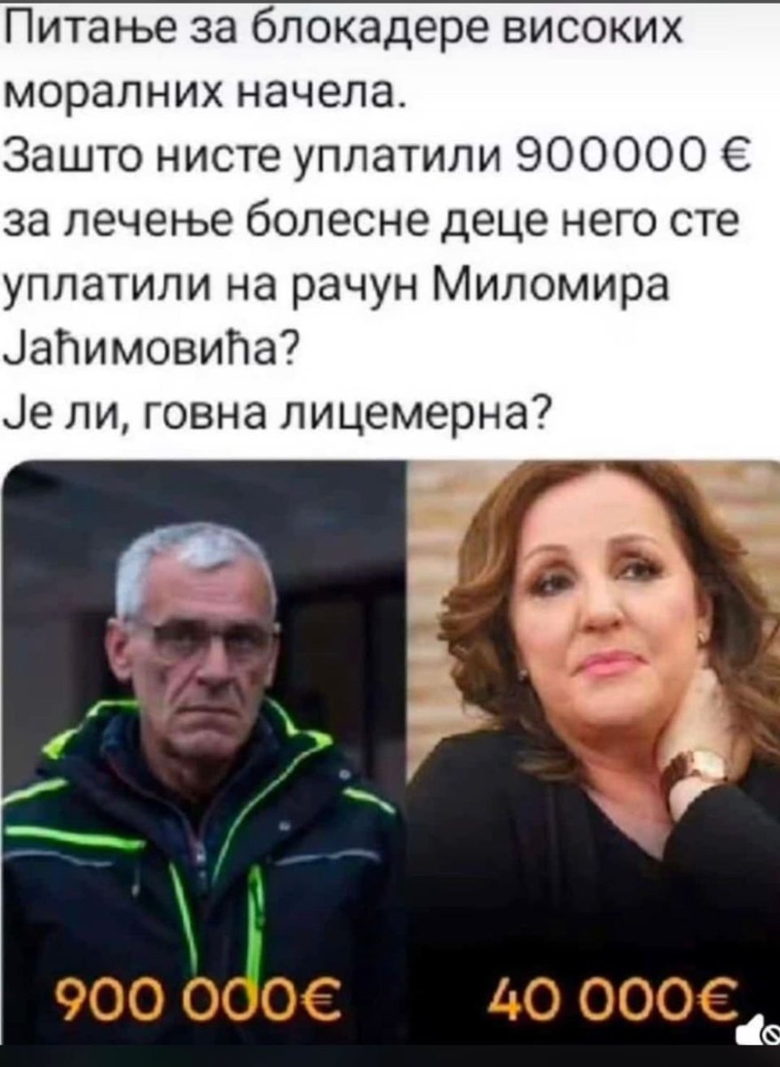 Blokaderima se upućuje direktno pitanje - zašto nije izdvojeno 900.000 evra za lečenje bolesne dece, već je taj novac uplaćen na račun lažova i blokaderskog prevoznika Milomira Jaćimovića?