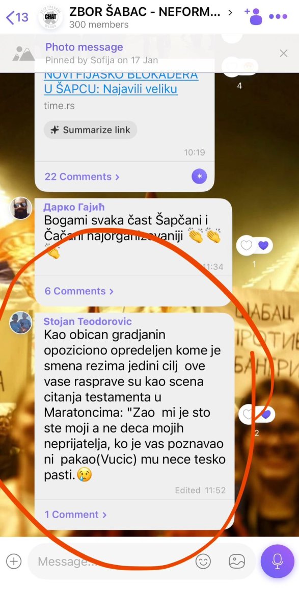 U Viber grupi nazvanoj "Zbor Šabac - neformalni chat", blokaderi su se međusobno posvađali naočigled ostalih članova grupe.