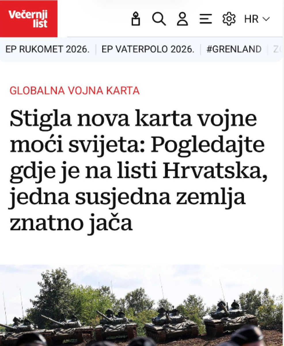Naime, hrvatski mediji, pozivajući se na Globalni indeks vatrene moći za 2025. godinu, objavili su rang-listu koja pokazuje da je Vojska Srbije najjače rangirana u regionu, ispred Hrvatske i ostalih zemalja Balkana, pišu mediji.