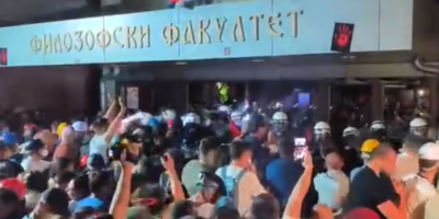 Pedesetak separatista, koje predvodi jedan od najostrašćenijih blokadera Dinko Gruhonjić, ceo dan pokušavaju da izazovu haos i nerede na Filozofskom fakultetu u Novom Sadu.