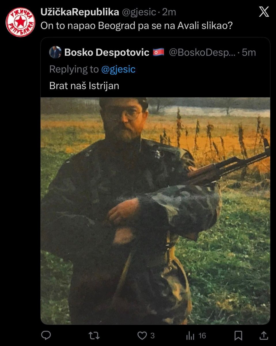 - On to napao Beograd, pa se na Avali slikao? - napisao je Ješić.