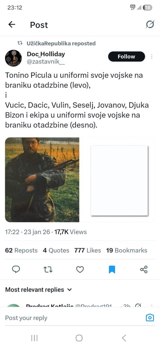 Jedan blokader objavio je dve fotografije na "Iksu", jednu sa Piculom u vojnoj uniformi i drugu na kojoj nema ničega sem bele boje.