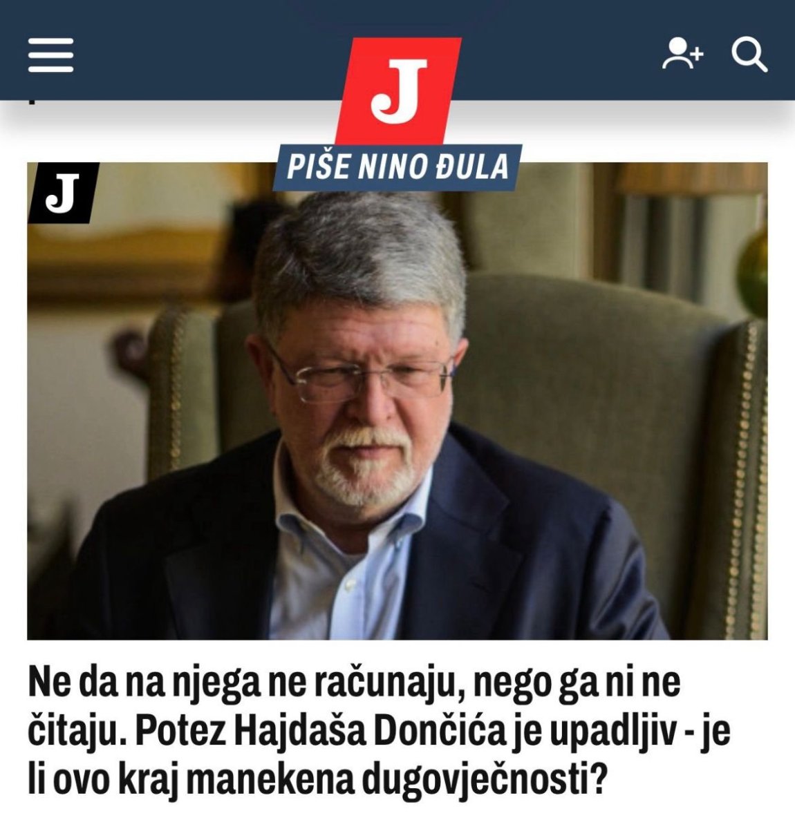 - Da tragamo za manekenom dugovečnosti u politici, nešto poput "Doživeti stotu u politici", sad kada više na ovom svetu nema Josipa Manolića, a i Vladimir Šeks se umorio, teško da bismo naišli na boljeg kandidata od večnog SDP-ovog šefa diplomatije i večnog kandidata za kandidata za predsednika SDP-a Tonina Picule - piše Nino Đula za hrvatski Jutarnji list u tekstu pod naslovom: "Ne da na njega ne računaju, nego ga ni ne čitaju. Potez Hajdaša Dončića je upadljiv - je li ovo kraj manekena dugovječnosti?"