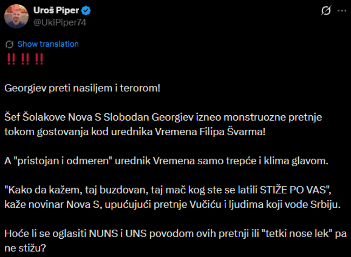 Slobodan Georgiev, Šolakov direktor vesti na Novoj S, jedan je od onih koji priželjkuju izbacivanje srpskog Telekoma sa tržišta u Nemačkoj, Austriji i drugim evropskim zemljama.