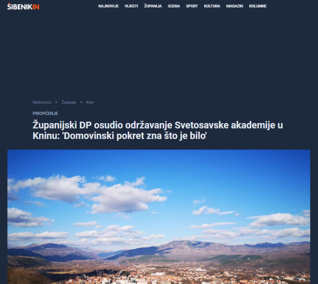 - Svetosavlje je bilo ideološka podloga velikosrpske agresije koja je krenula upravo iz Knina, stoga smatramo neprihvatljivim da se u ovom starom hrvatskom kraljevskom gradu, u prostorijama studentskog doma koji je u vlasništvu Republike Hrvatske, održava manifestacija koja propagira onu ideologiju koja je gradu Kninu, Kninjanima svih nacija i vjeroispovijesti te Republici Hrvatskoj nanela ogromnu štetu - stoji u fašističkom saopštenju Domovinskog pokreta.