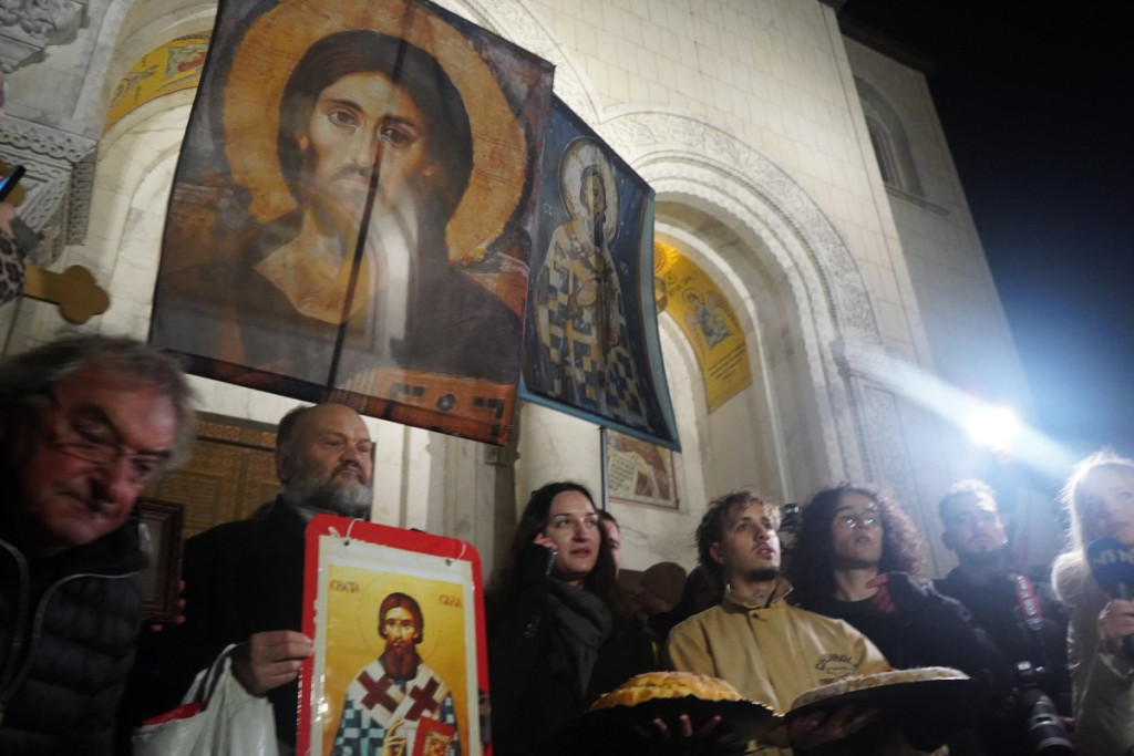 Istovremeno su ispred Hrama ismevali i slavu i dan najvećeg srpskog svetitelja Svetog Save.