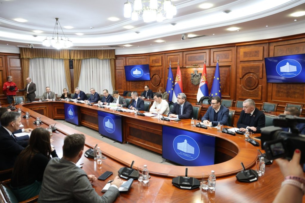 Na sastanku učestvuju predsednica Narodne skupštine Ana Brnabić, prvi potpredsednik Vlade i ministar finansija Siniša Mali, potpredsednik Vlade i ministar unutrašnjih poslova Ivica Dačić, ministar za evropske integracije, glavni pregovarač i nacionalni koordinator Instrumenta za reforme i rast Nemanja Starović.