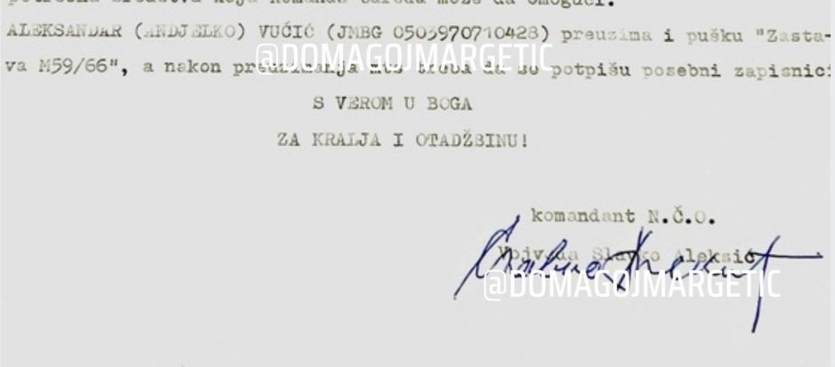 Ovo je dokument koji je juče objavio Domagoj Margetić, u kojem Aleksić navodno traži od logistike odreda da Aleksandar Vučić zaduži pušku „papovku“.