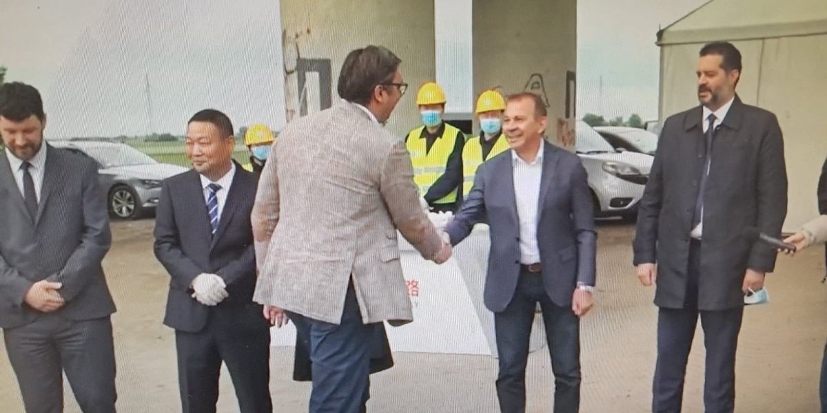 "Nebojša Bojović, predsednik Skupštine akcionara kompanije Ifrastrukture i najbliži saradnik rektora Đokića 30. maja 2020. godine sačekuje predsednika Srbije Aleksandra Vučića prilikom obilaska radova na brzoj pruzi Beograd - Budimpešta!