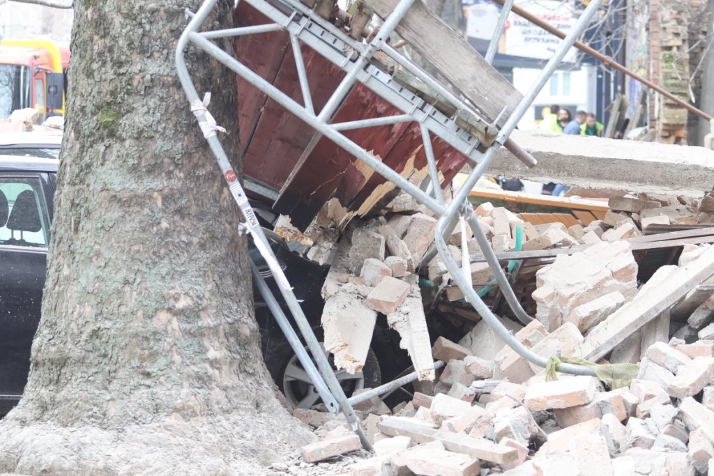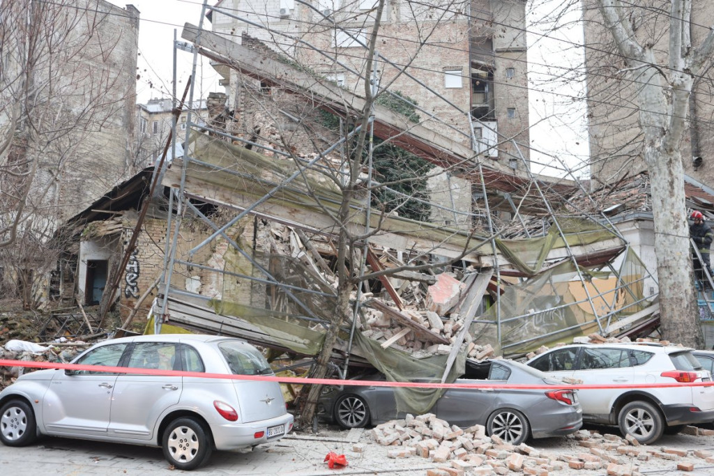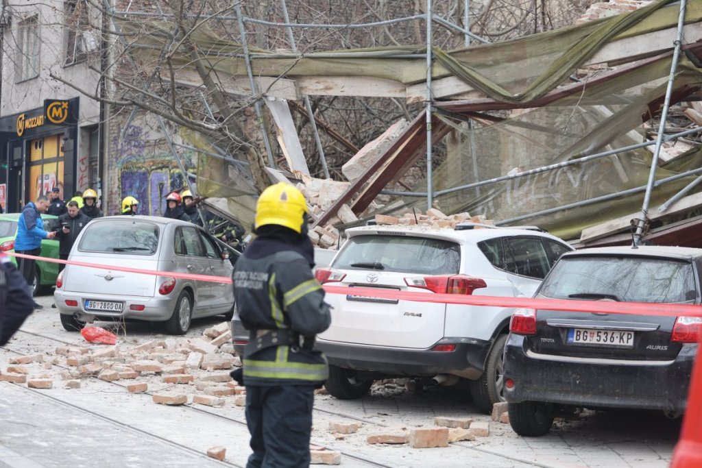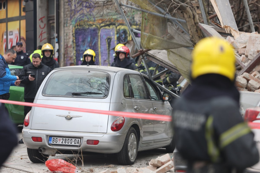 U centru Beograda došlo je do urušavanja dela starog objekta u Ulici Džordža Vašingtona, a prvi snimci pokazuju da su automobili koji su se nalazili tu potpuno uništeni.