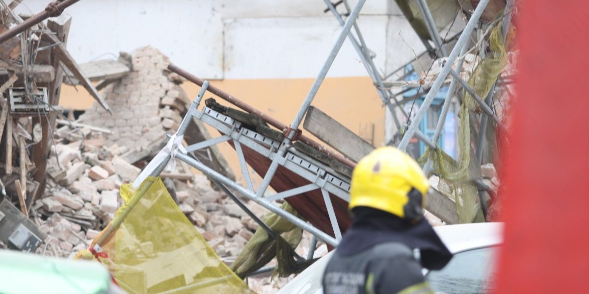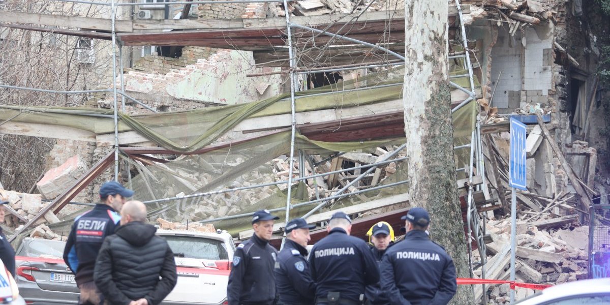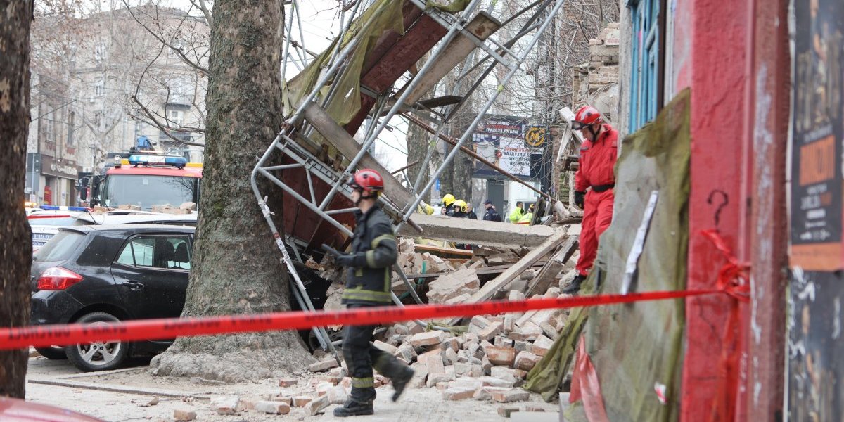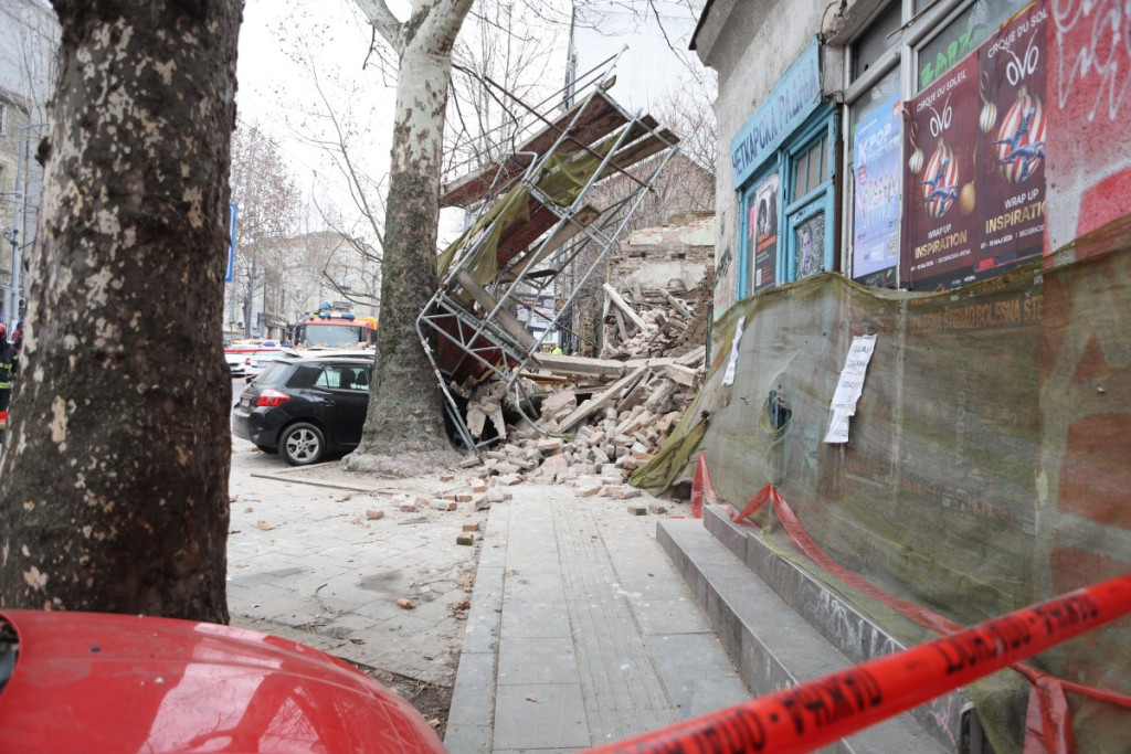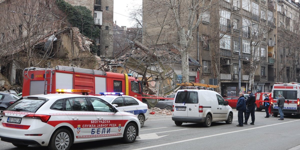 Nekoliko policijskih patrola, vozila Hitne pomoći, kao i vatrogasnih vozila nalazi se u Ulici Džordža Vašingtona, gde je došlo urušavanja stare zgrade.