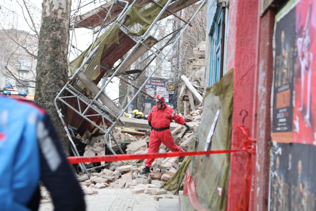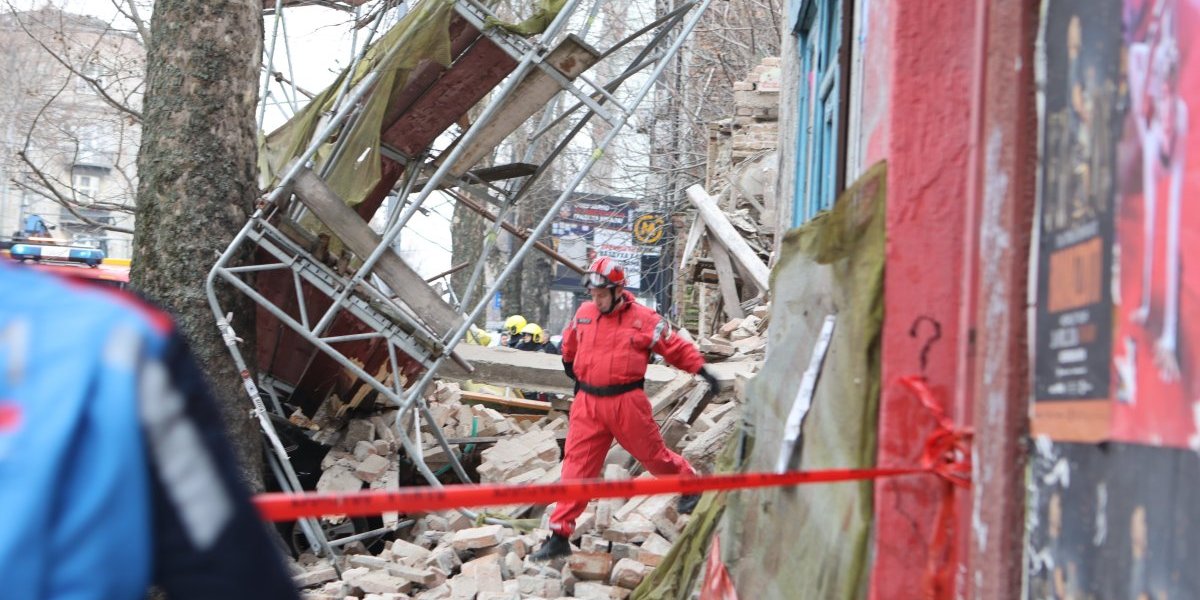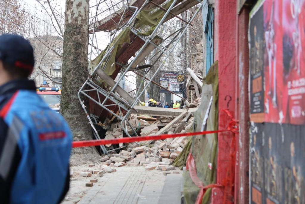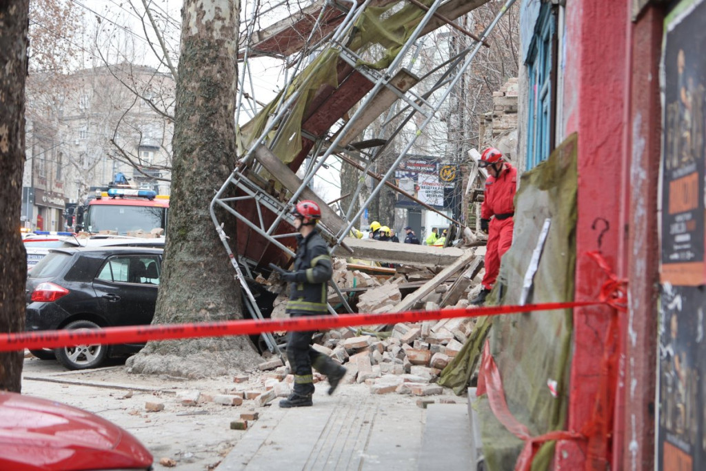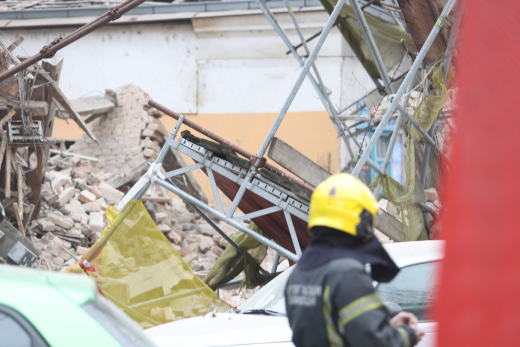 Nekoliko policijskih patrola, vozila Hitne pomoći, kao i vatrogasnih vozila nalazi se u Ulici Džordža Vašingtona, gde je došlo urušavanja stare zgrade.