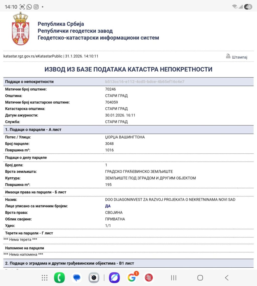 Pogledajte dokaz iz APR-a o vlasništvu nad urušenim objektom.