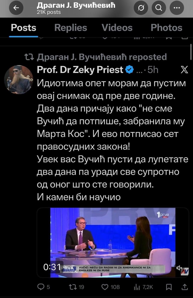 Autor objave podseća da je identičan snimak već ranije kružio javnim prostorom i da se ponavlja ista matrica. Dva dana se plasiraju tvrdnje kako je predsedniku Srbije nešto zabranjeno, da mu je neko "vezao ruke" ili naredio da odustane od odluka, a zatim se desi upravo suprotno.