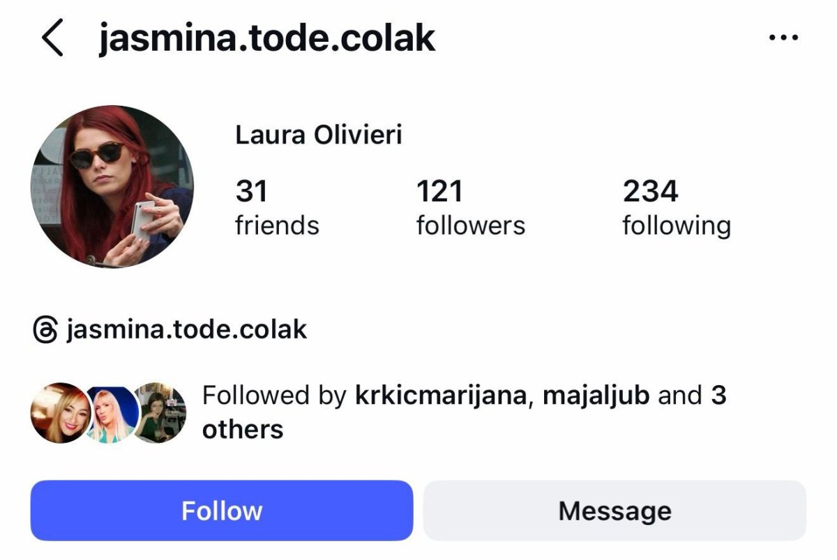 Pažnju javnosti privukao je Instagram profil Jasmine Čolak, savetnice za medije specijalnog tužioca za organizovani kriminal Mladena Nenadića i bivše novinarke tajkunskog lista "Danas", koja na društvenim mrežama koristi nadimak "Laura Olivieri".