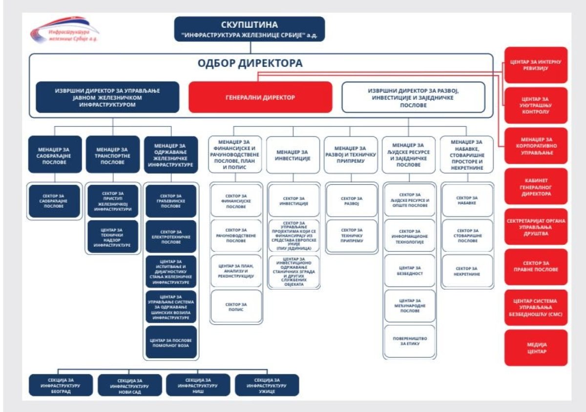 Da je on direktno odgovoran za sve u Infrastrukturi železnice pokazuje i šema strukture preduzeća sa njenog veb-sajta. Na njoj se jasno vidi da je Skupština akcionara, kojom je Bojović presedavao, najviši organ preduzeća.