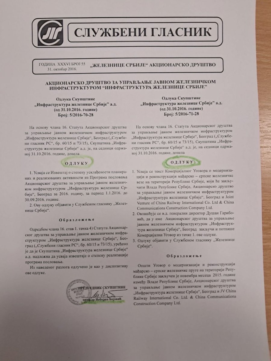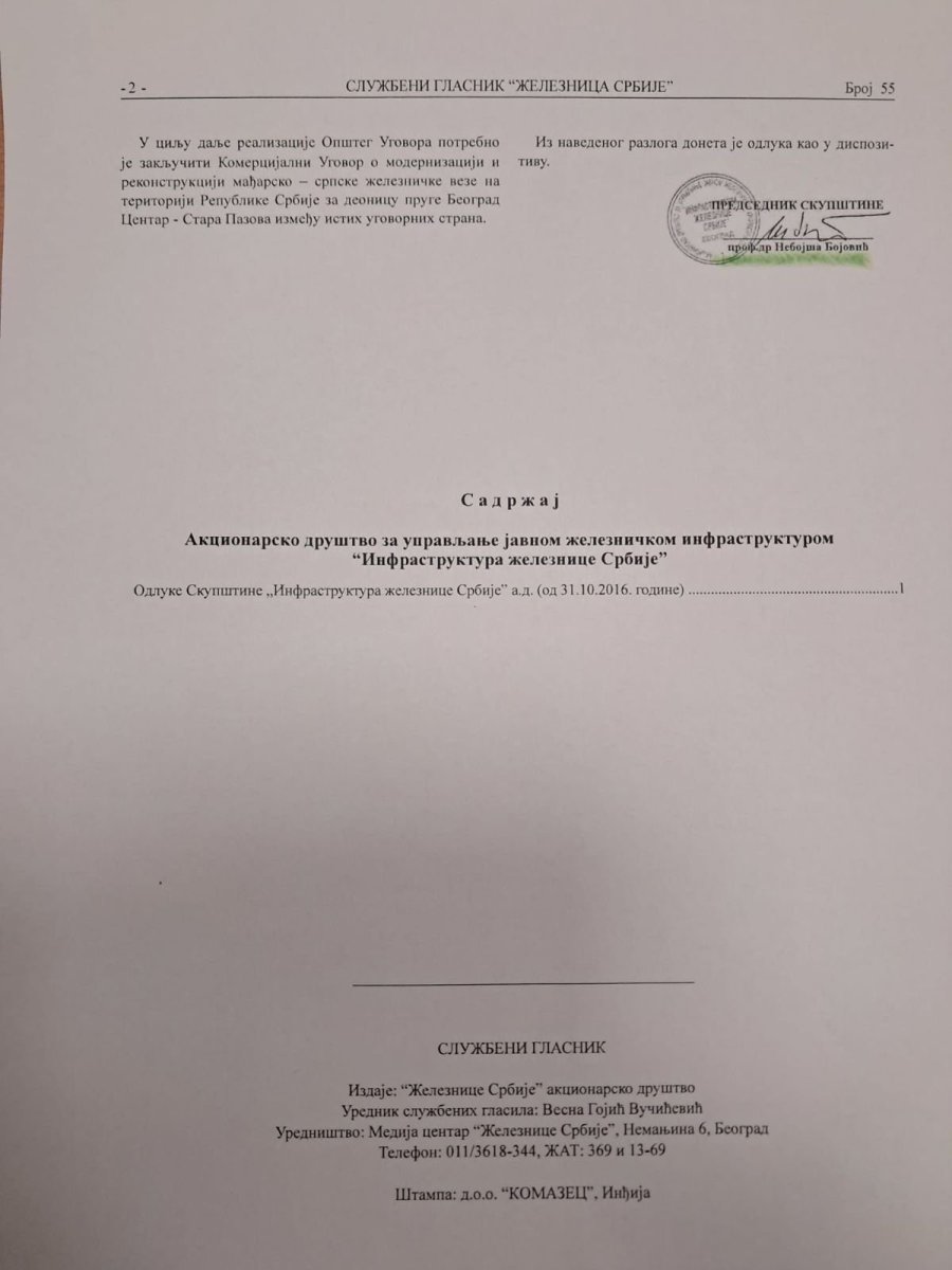 3. Sve ove odluke potpisao je lično Nebojša Bojović, predsednik Skupštine akcionara kompanije Infrastruktura železnica Srbije i one su objavljivanje u ”Službenom glasniku Žekeznica Srbije” čime su dobile zvaničan i službeni karakter.