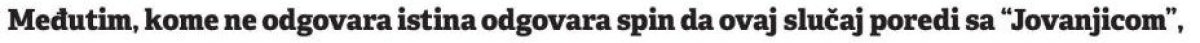 - Kome ne odgovara istina, odgovara spin da ovaj slučaj poredi sa "Jovanjicom" - piše Zorićeva, čime je još jednom stavljena tačka na aferu na kojoj godinama unazad pokušavaju da "jašu" tajkunski mediji, ne bi li diskreditovali predsednika Srbije Aleksandra Vučića.