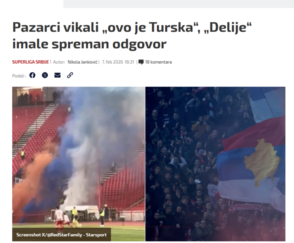 Da sve bude gore, i na samoj utakmici, Pazarci su skandirali "Ovo je Turska", što nisu mogli da prećute čak ni tajkunski mediji.