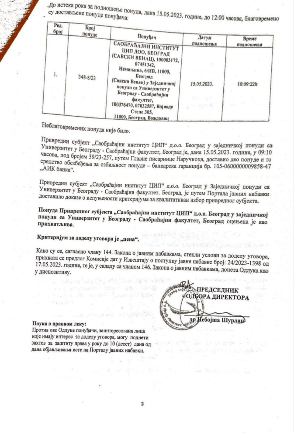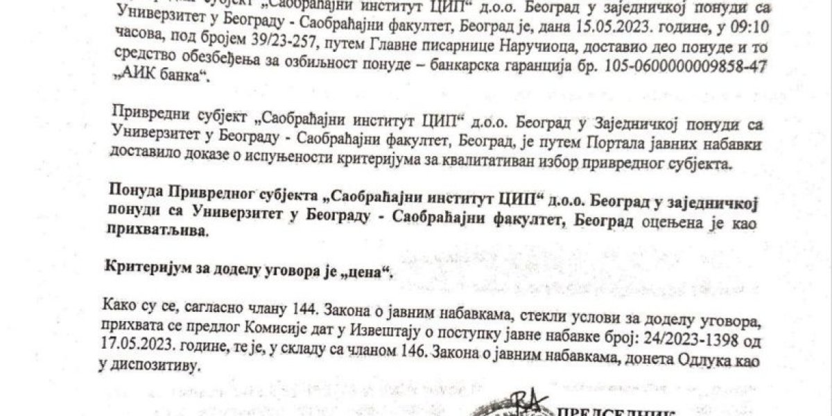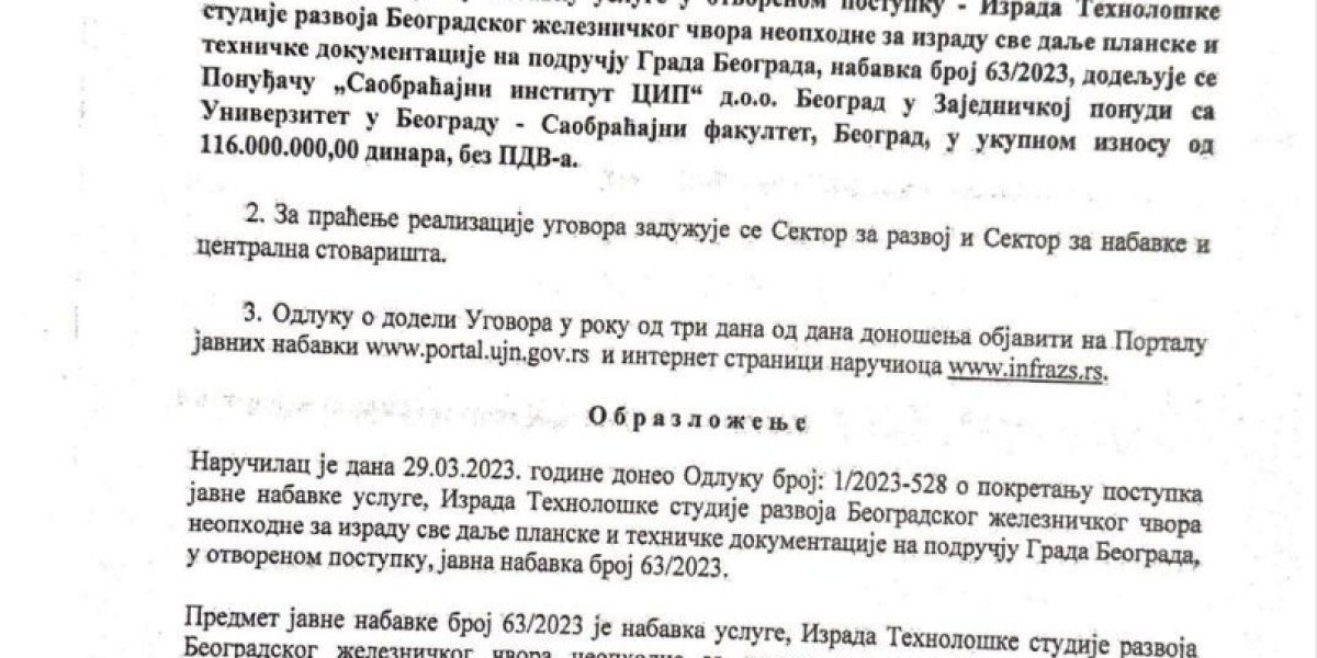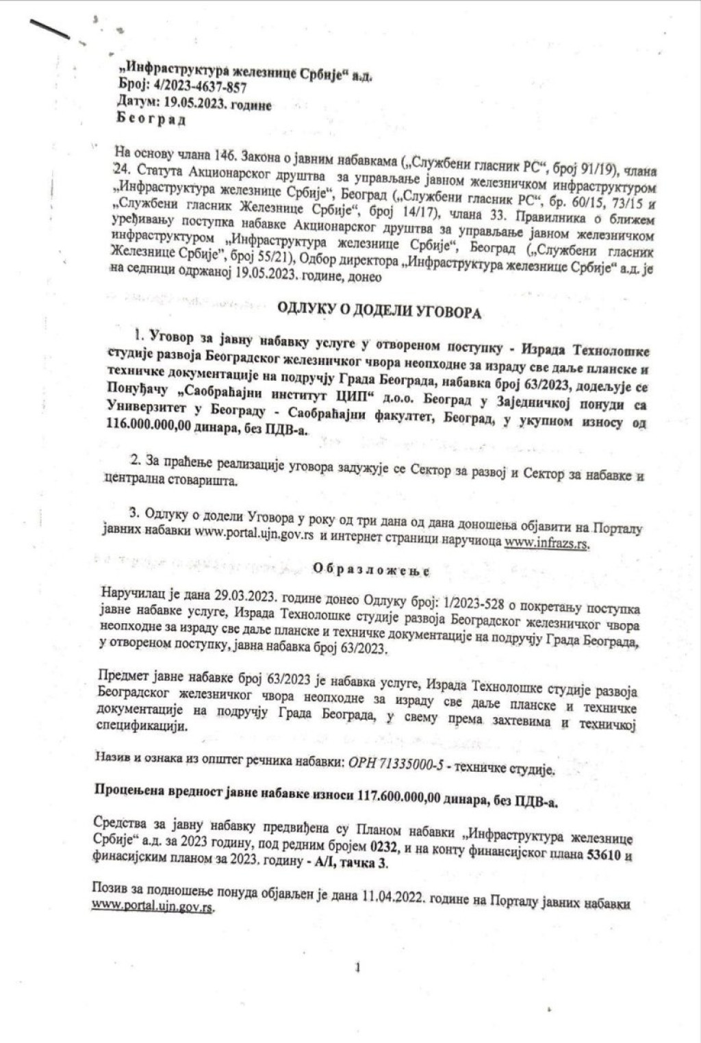 - A upravo je taj fakultet dobio posao, dok je istovremeno Bojović bio i predsednik Skupštine akcionara kompanije Infrastruktura železnice Srbije, najvišeg organa preduzeća, koje je dodelilo posao - istakao je dr Mrdić.