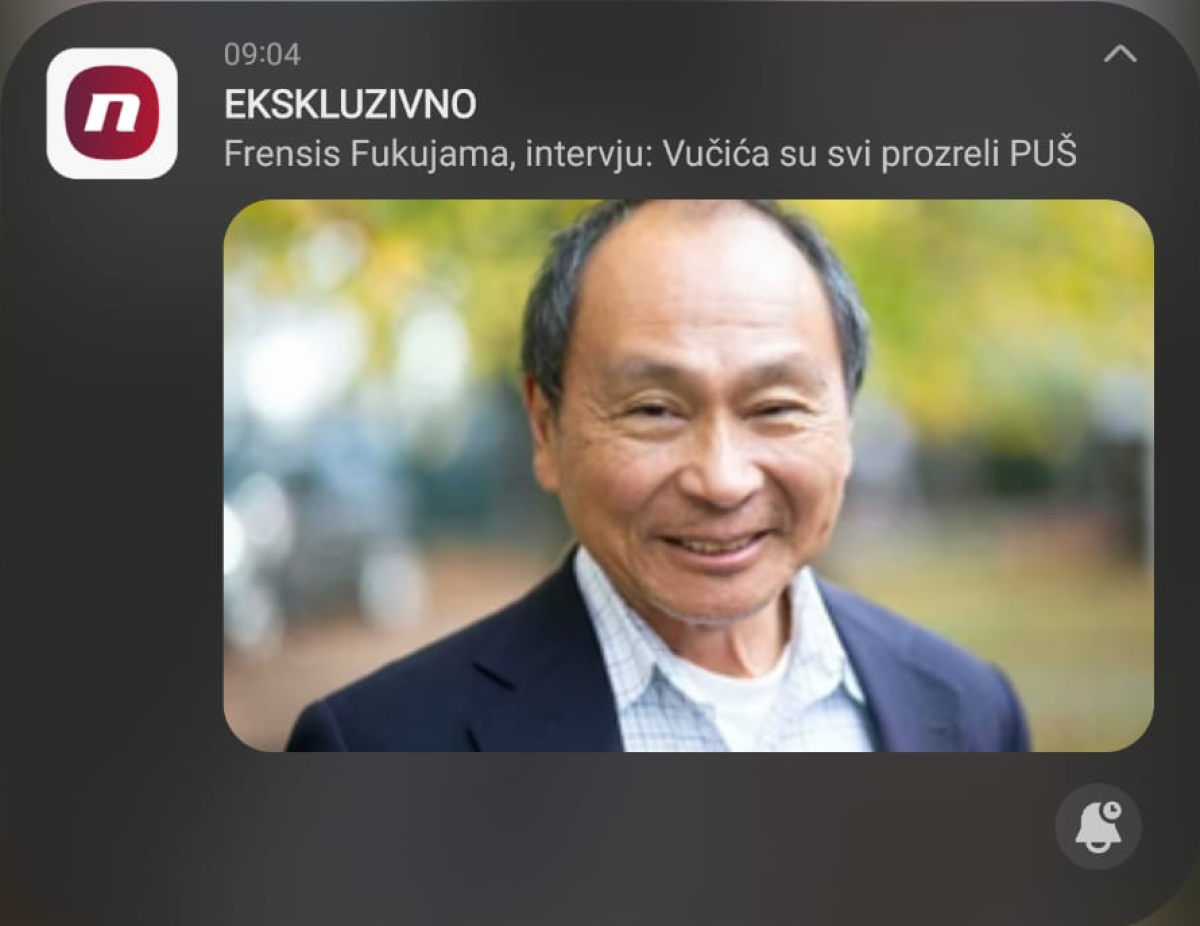 Naime, tajkunski portal Nova, medijsko glasilo koje u svakoj prilici i na svakom mestu napada šefa države, požurio je da objavi intevju sa Frensisom Fukojamom, u kome Fukojama tvrdi da su "Vučića svi prozreli", ali im se u svemu potkrala i greška.