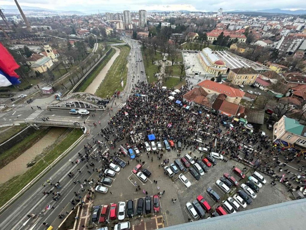 Na protestu u Kragujevcu okupljenima se obratila Jelena Kleut, koja je donedavno bila vanredna profesorka Odseka za medijske studije na Filozofskom fakultetu u Novom Sadu, a blokaderi iz Kragujevca, uputili su se u Orašac.
