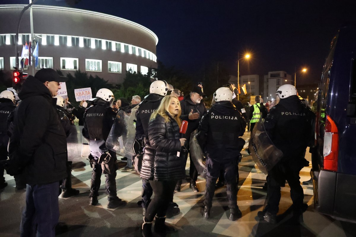 Prema rečima naše koleginice, na platou ispred Pozorišta je trenutno veličanstven prizor jer se tamo okupio veliki broj građana kako bi prisustvovali akademiji, međutim, istovremeno, verovali ili ne, pristižu i blokaderi.
