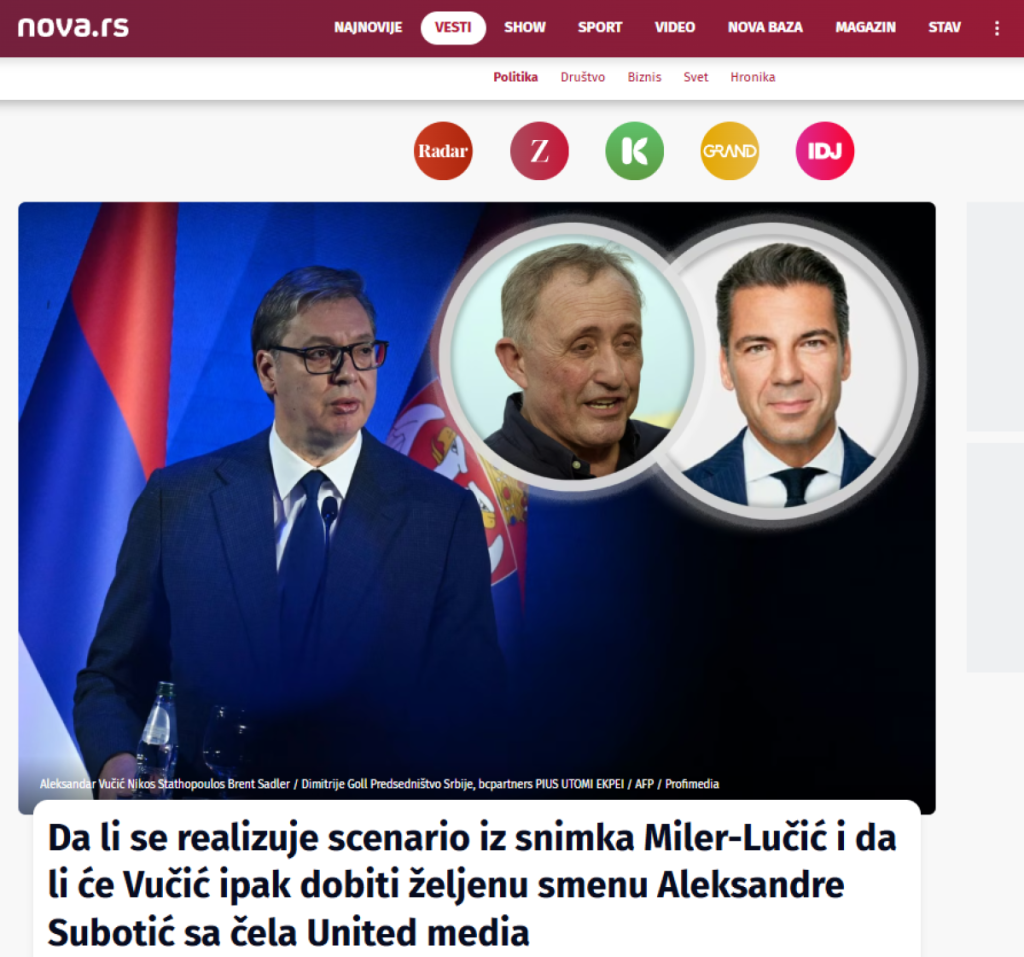 - Ono što se dugo najavljivalo, kako u ovim medijima, tako i od strane predsednika Srbije Aleksandra Vučića, konačno dobija svoje obrise. Ići će se redom, od direktora, preko urednika, a završiće se promenom uređivanja. Prve promene će uslediti na N1 - planirana je ubrzana reorganizacija i postavljanje nove uprave medija, koja će postaviti i nove urednike. Potom će se isto uraditi i na TV Nova i Nova.rs, a završiće se sa Radarom - piše Direktno.