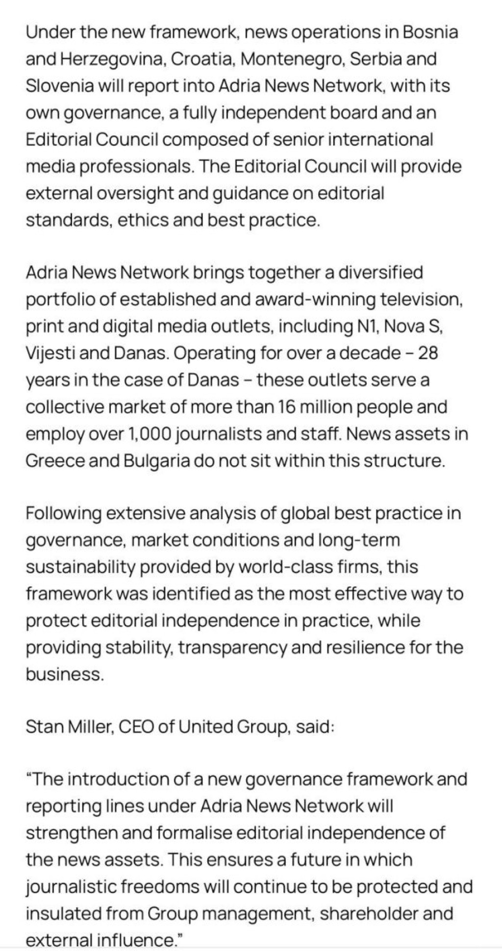Kako ekskluzivno saznaje Informer, iz krugova bliskih upravi Junajted grupe, na nedavnoj sednici Nadzornog odbora došlo je do važnih promena u upravljačkoj strukturi kompanija Adria News i Junajted medija Luksemburg.