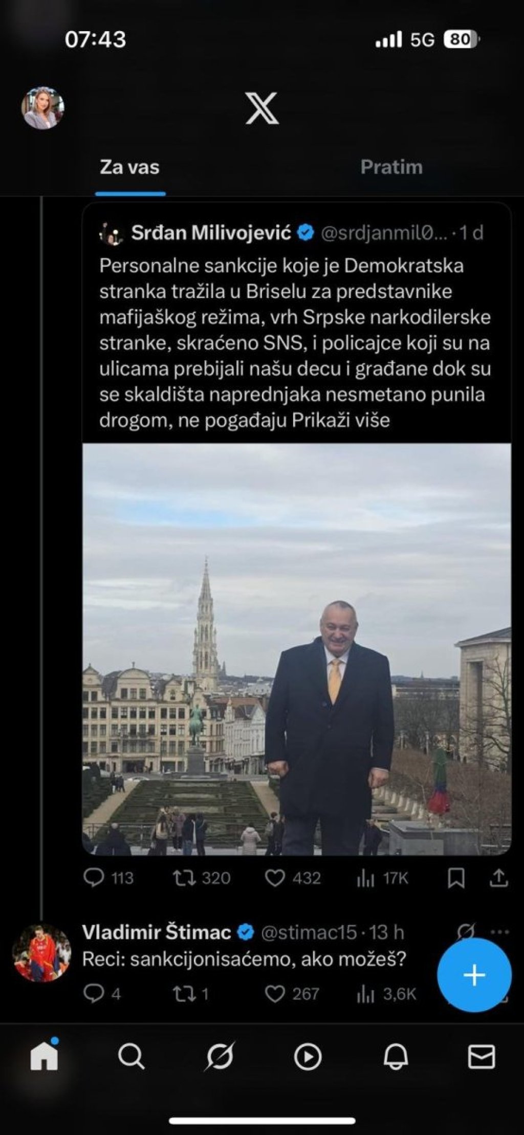 - Podrška za sve objektivne novinare koji će biti sklonjeni jer se režim sprema da uvede totalni medijski mrak pred izbore. Stojim vam svima na raspolaganju - preporučio se Štimac na Iksu.