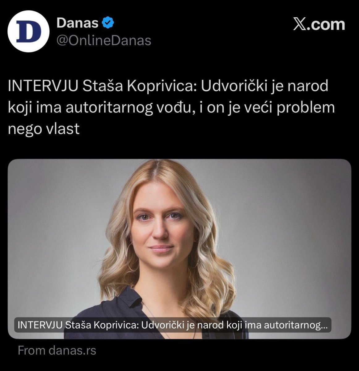 Da rediteljka Staša Koprivica ne krije simpatije prema blokaderima potvrđuje i njen intervju za Šolakov tabloid "Danas".