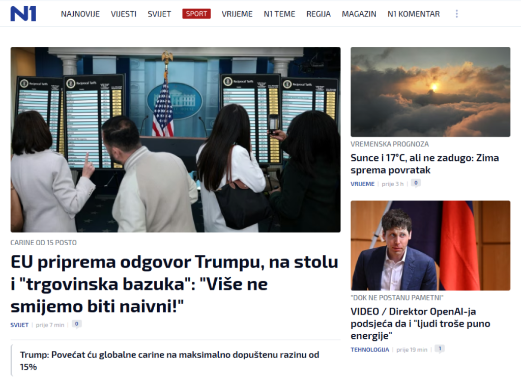 Uz ovu vest, kako se može videti na foto-iskečku, na udarnim mestima su i reakcija direktora N1 Igora Božića kao i vest o smeni Aleksandre Subotić.