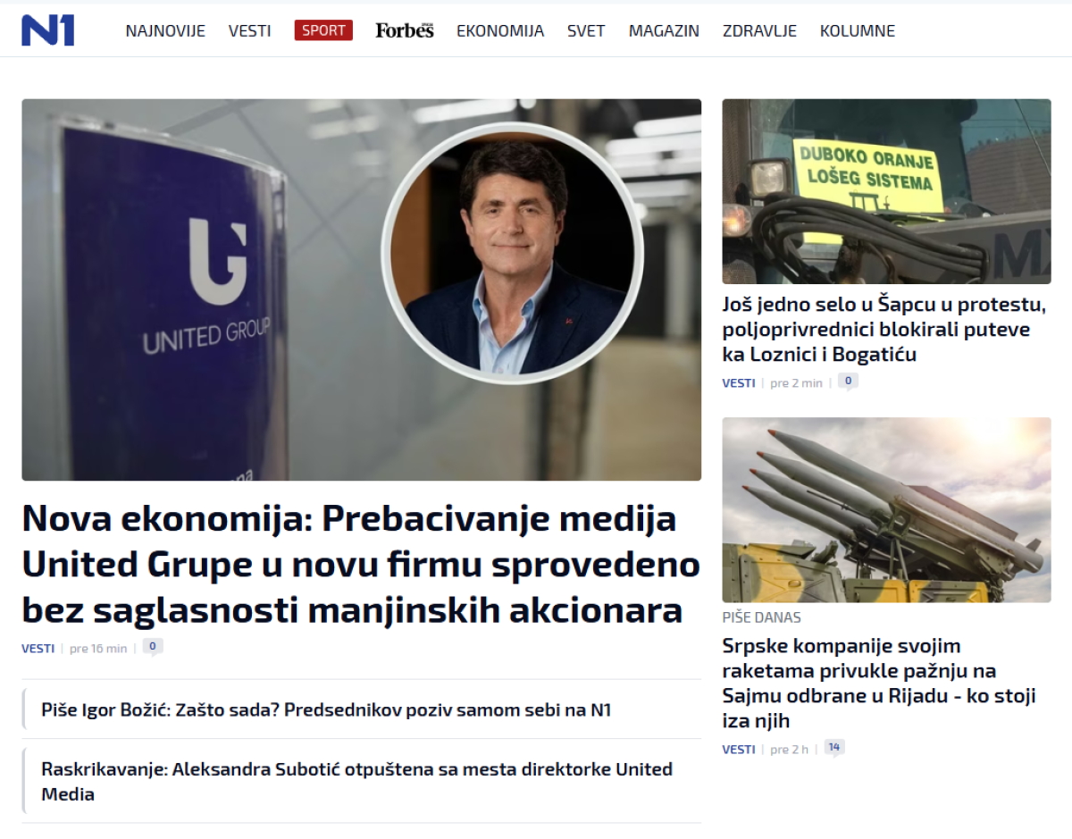 Vesti o novim vlasnicima i njihovim planovima smenjuju se kao na traci, pa je u trenutku objavljivanja ovog članka centralna vest preuzeta sa portala Nova ekonomija i plasirana uz bombastičan naslov “Prebacivanje medija United Grupe u novu firmu sprovedeno bez saglasnosti manjinskih akcionara”.