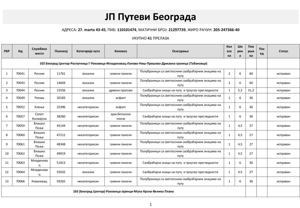 Đilasa i njegove sledbenike jasno demantuje zvaničan dokument JP Putevi Beograd, koji su iz tog preduzeća dostavili Informeru, a u kojem je naveden spisak svih prelaza u Beogradu. Takvi prelazi su upisani i opremljeni signalizacijom. Na spisku ispod, koji je zvaničan dokument, nema prelaza na kojem je stradala mlada žena u Rakovici!