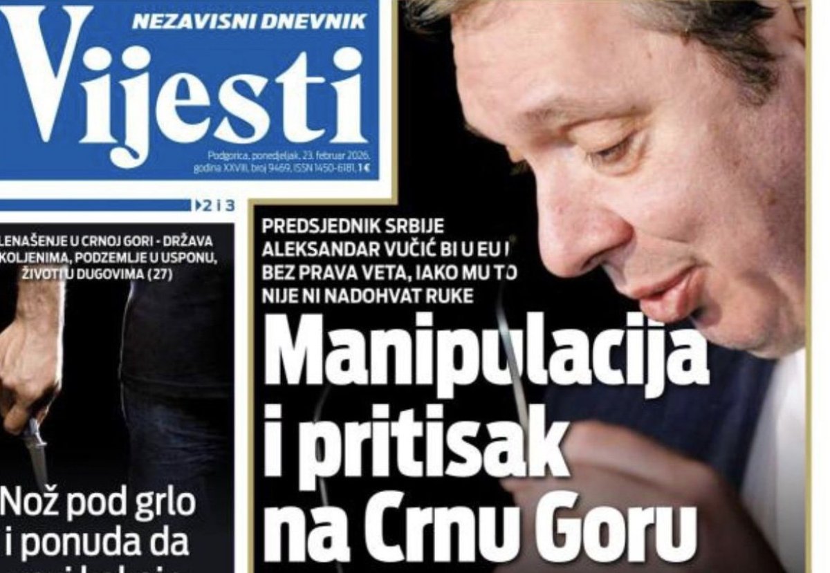 U tekstu pod naslovom "Manipulacija i pritisak na Crnu Goru", navode da bi Vučić "u EU bez prava veta, iako mu to nije ni na dohvat ruke".