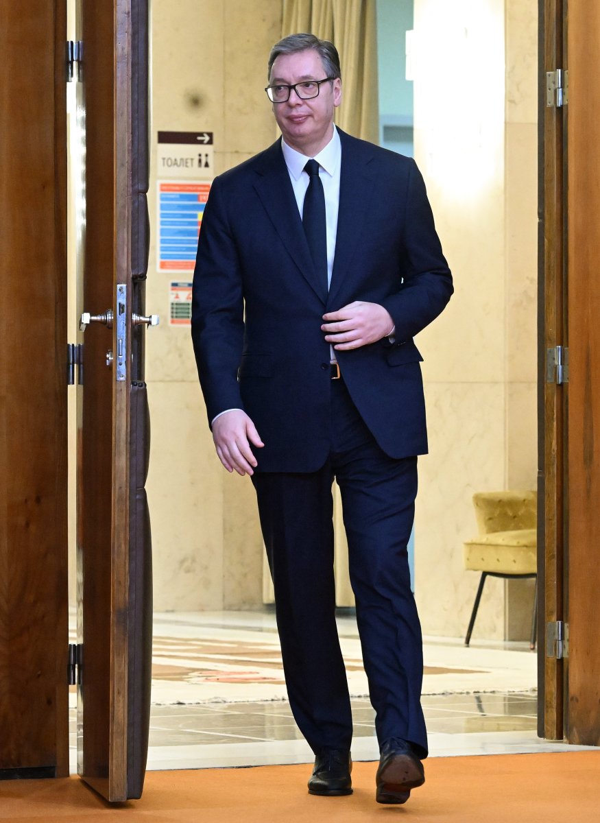 Predsednik Srbije Aleksandar Vučić prisustvovao je otvaranju izložbene postavke elemenata upisanih u Nacionalni registar nematerijalnog kulturnog dobra "Niti državnosti", a nakon toga predsednik se obratio medijima.