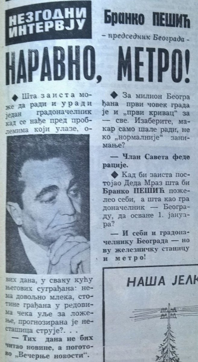 Čelnici Beograda tog vremena su uvideli i važnost metroa - o čemu je za tadašnje novinare govorio Branko Pešić, nekadašnji gradonačelnik Beograda.