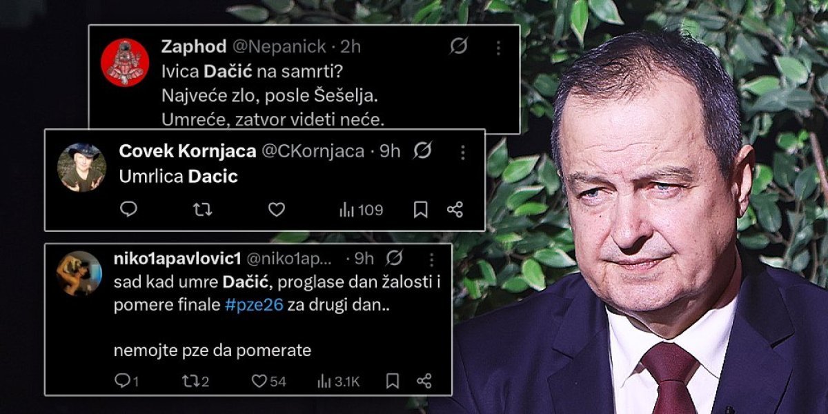 Nakon što je ministar unutrašnjih poslova Ivica Dačić hospitalizovan, na društvenoj mreži Iks pokrenuta je strašna kampanja u kojoj su blokeri izneli najgroznije poruke, nadajući se smrti predsednika Socijalističke partije Srbije - Dačića, ali i predsednika Srbije Aleksandra Vučića.
