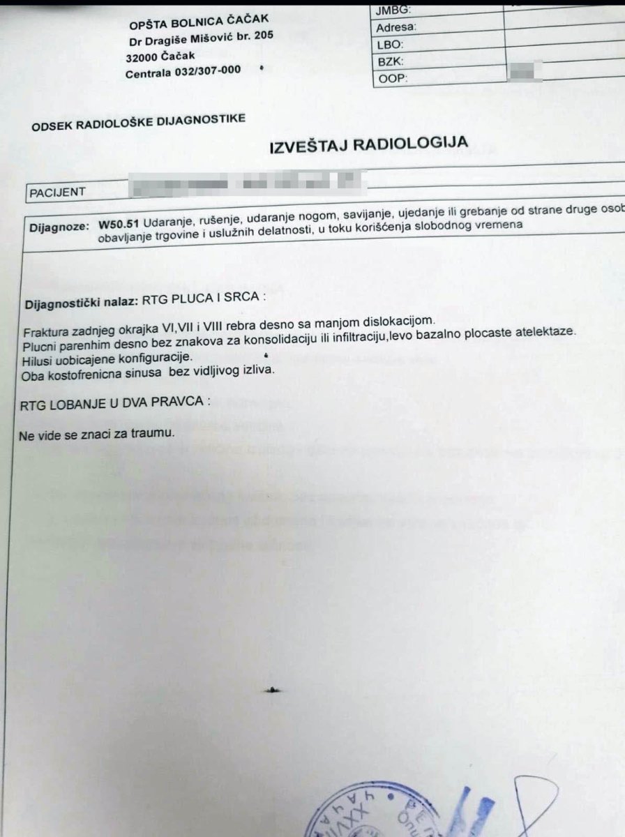 Naveo je da je, dok je ležao na zemlji, više osoba nastavilo da ga šutira, ali da u ovom trenutku ne može precizno da potvrdi ko je sve učestvovao u napadu.