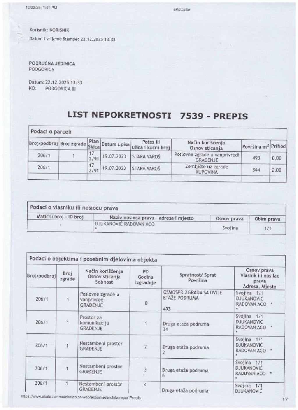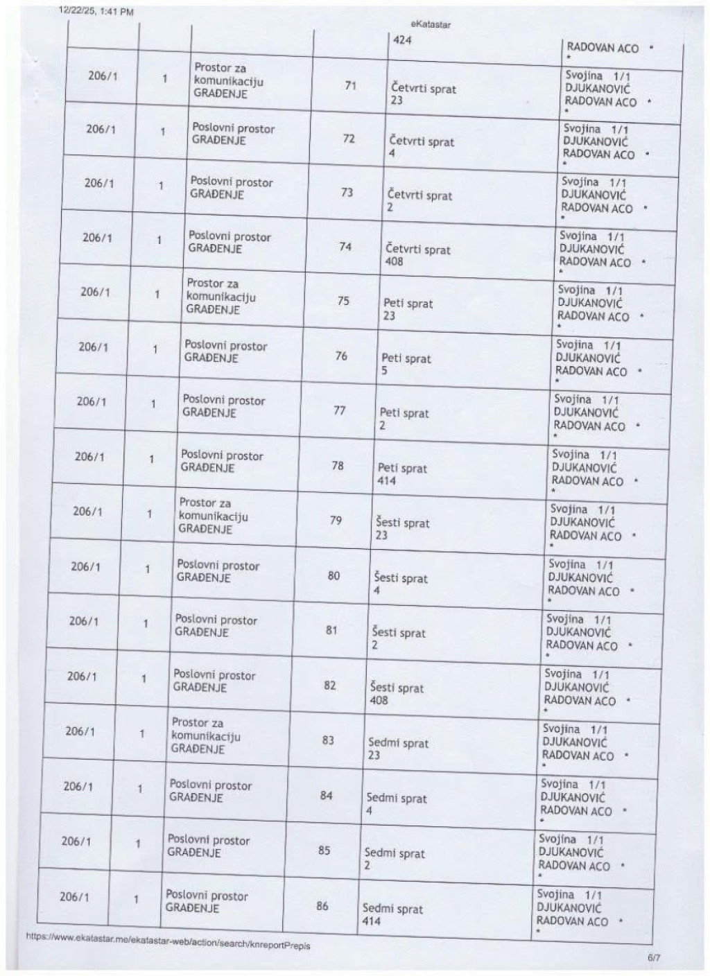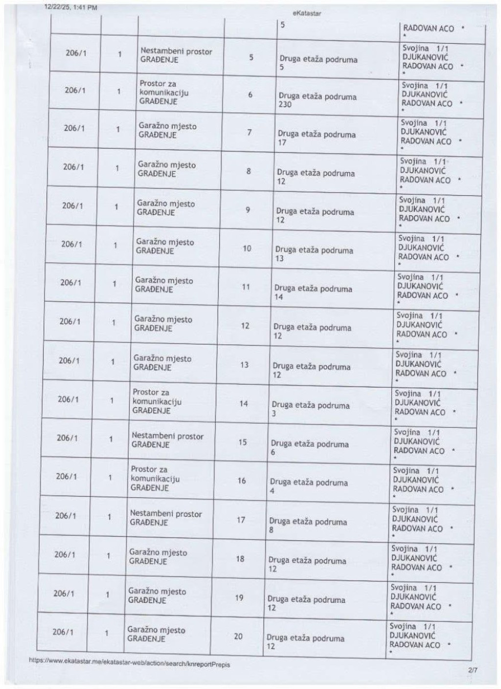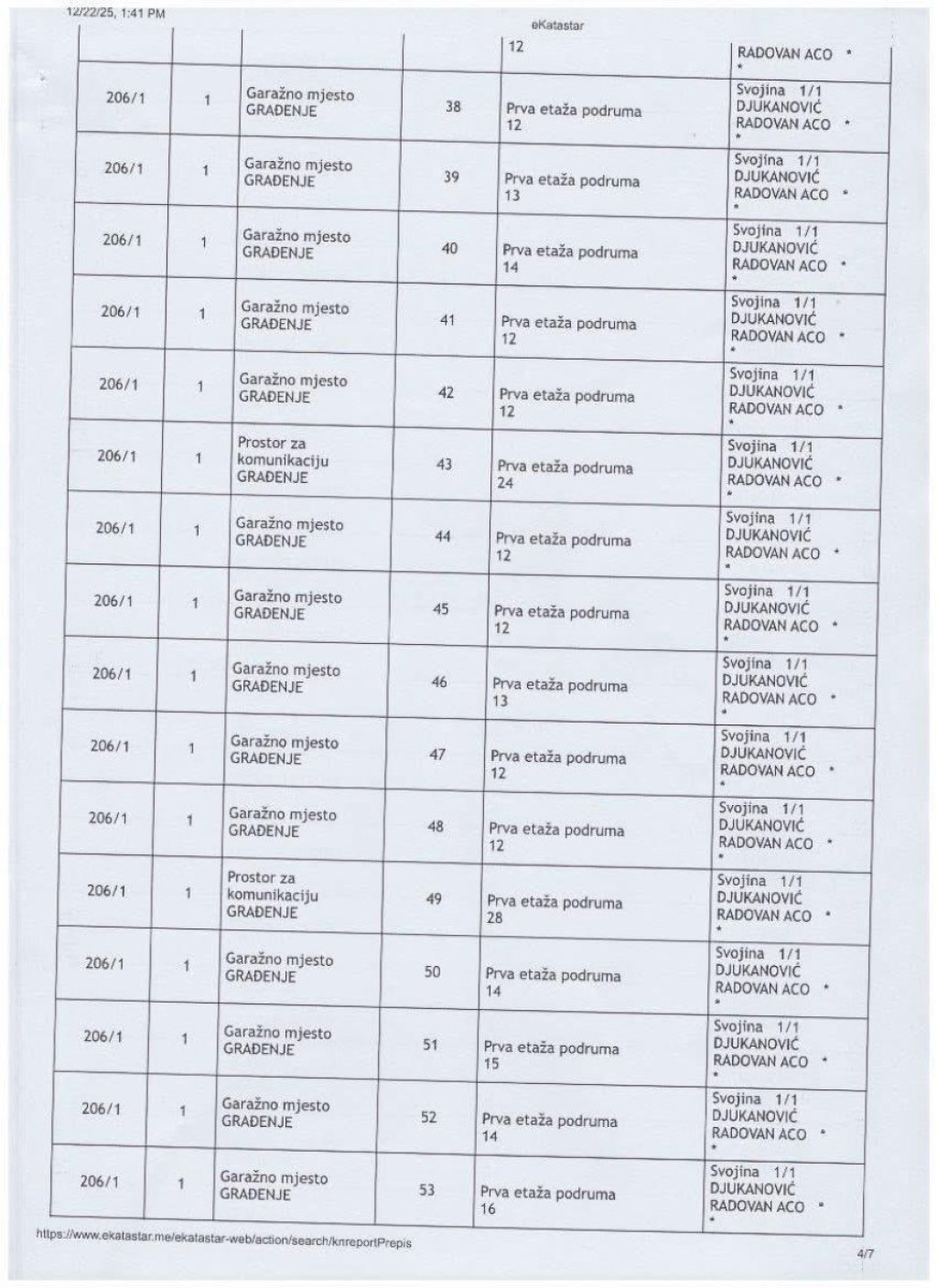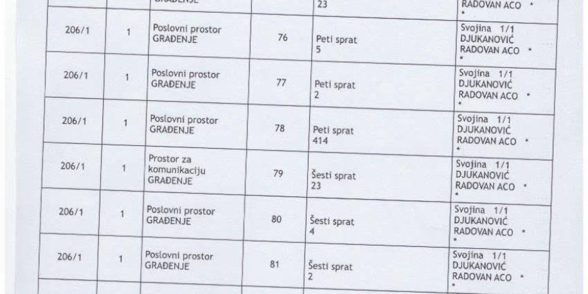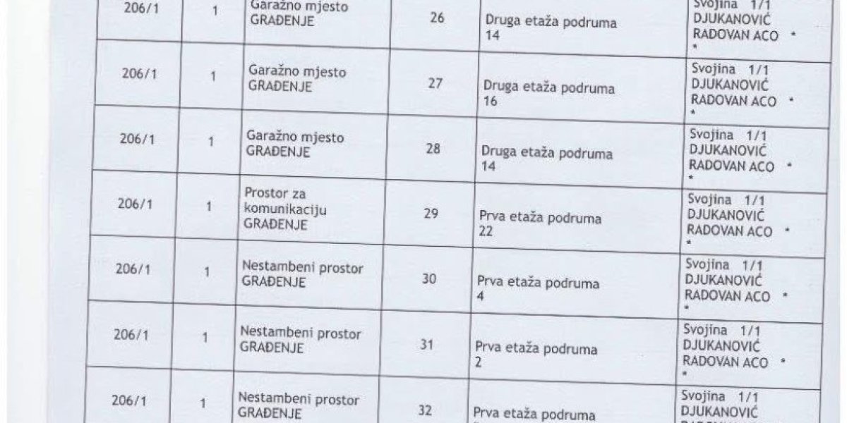 - Ovo je zvanična imovina Aca Đukanovića. Ovo nije stan. Ovo nije kuća. Ovo je čitava imperija, zgrada po spratovima, podrumima i desetinama garažnih mesta, upisana na jednog čoveka. Poslovni prostori, stotine kvadrata, nivoi podzemnih etaža, sve u katastru, sve na isto ime. I zato je pitanje kratko, brutalno i neizbežno: Odakle pare? Koji posao, koja firma, koja godina, koji bilans, koji porez objašnjava ovu imovinu? Ko je radio, a ko je vladao dok se ovo sticalo? I zašto decenijama niko iz institucija nije pitao ono što danas pita svaki građanin koji ovo vidi? - napisao je Bogdanović uz dokumenta u kojima se vidi crno na belo šta je sve u katastru zavedeno kao vlasništvo brata nekadašnjeg predsednika Crne Gore.