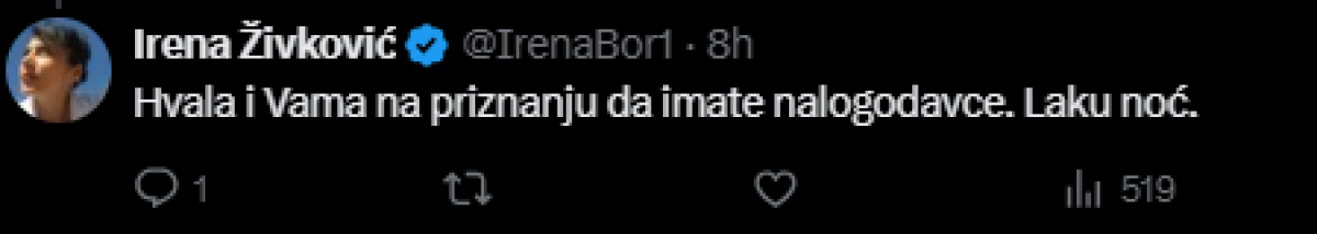 Foto: Tviter/ Irena Živković @IrenaBor1