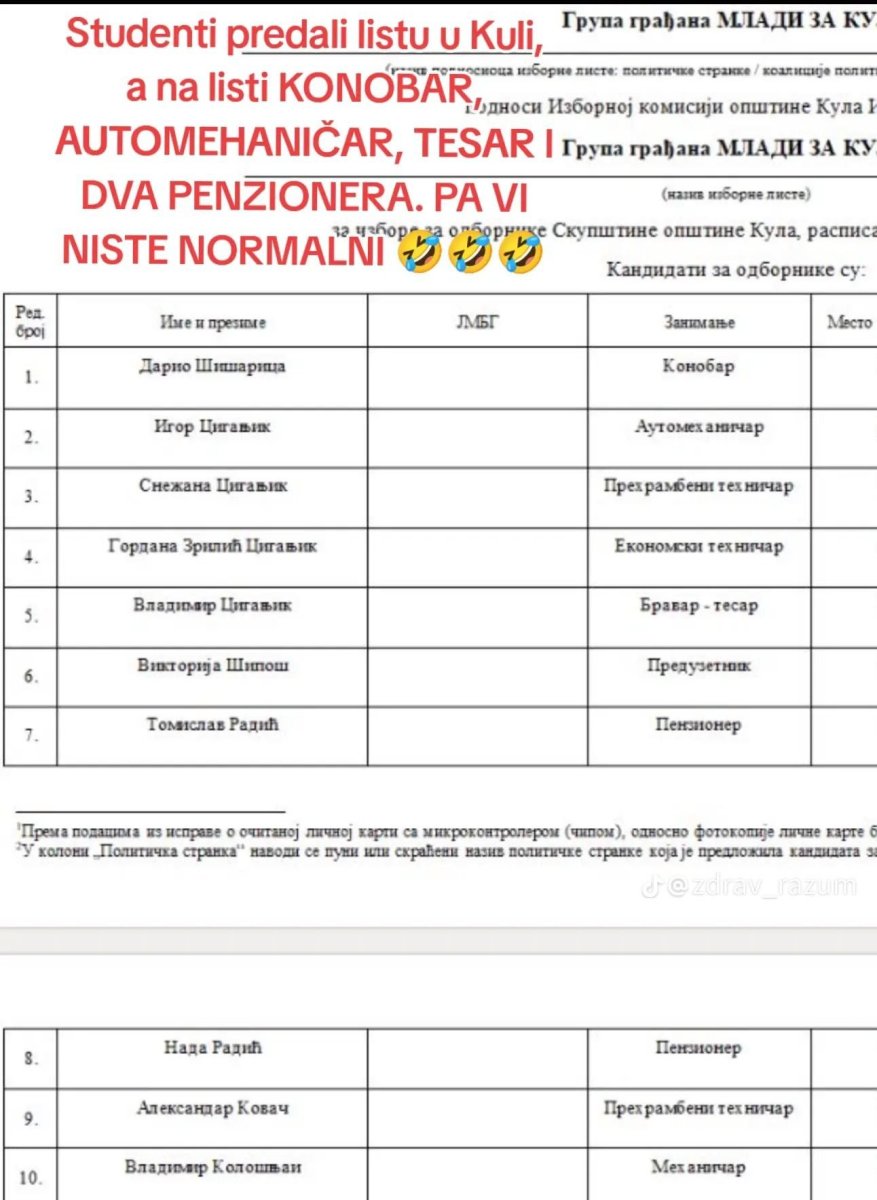 Međutim, ono što je većini zaparalo oči jeste to da ljudi koji su na toj izbornoj listi nisu nikakvi politički stručnjaci, već penzioneri, automehaničari, bravar, konobari...