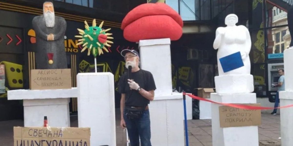 Tokom 2022. godine, ispred TPC "Kalča", Blagojević je organizovao tzv. inaguraciju, kada je izložio više skulptura i tom prilikom sa maskom predsednika Srbije sam Blagojević je presekao "crvenu vrpcu" i prisutnim građanima poslužio tzv. ekološke sendviče od stiropora.