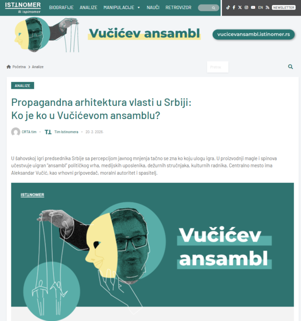 Crta i Istinomer, naime, objavili su članak pod naslovom "Propagandna arhitektura vlasti u Srbiji: Ko je ko u Vučićevom ansamblu?" u kom su se našle javne ličnosti, među kojima je i glavni urednik Informera Dragan J. Vućićević.