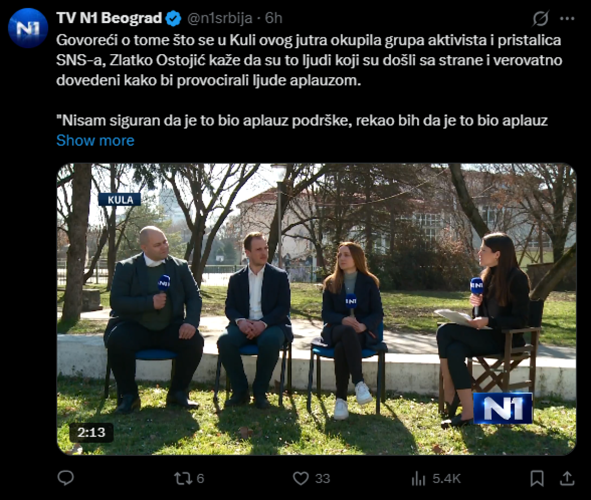 "N1" se i na društvenoj mreži "Iks" pohvalio sprovođenjem kampanje za blokadere uživo u programu.