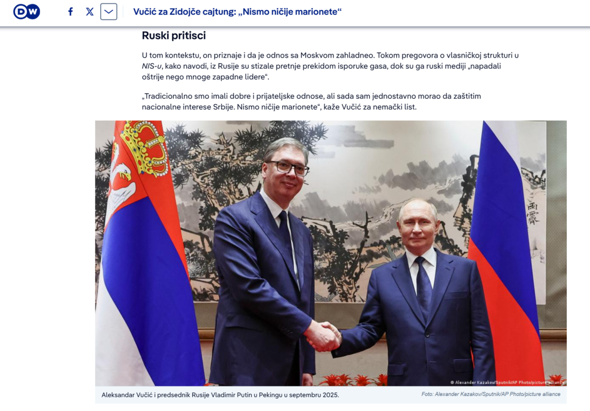 Ostaje jedino pitanje zašto je srpska redakcija "Dojče velea" ove reči pripisala predsedniku Srbije.